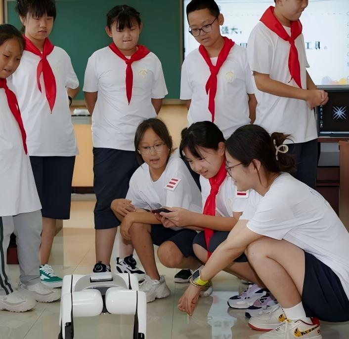 圖4實(shí)踐團(tuán)成員向中小學(xué)生進(jìn)行智能機(jī)器狗演示
