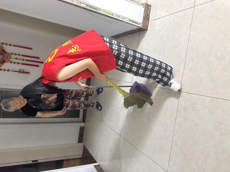 圖為隊員為老人打掃衛生。康怡霖 攝