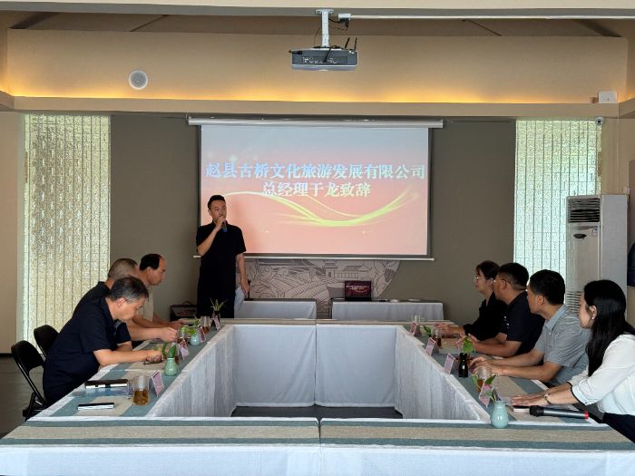 儀式上,趙州橋景區(qū)總經(jīng)理于龍對(duì)實(shí)踐團(tuán)的到來表示歡迎。他肯定了學(xué)生實(shí)踐為古橋注入活力,其對(duì)文物保護(hù)的宣傳提升了大眾重視。指出共建基地是景區(qū)發(fā)展所需,景區(qū)將提供平臺(tái),支持校企合作以實(shí)現(xiàn)優(yōu)勢(shì)互補(bǔ),助力相關(guān)文化廣泛傳播。