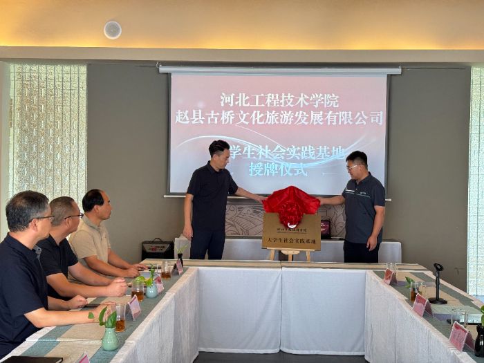 隨后,尹院長同趙州橋景區(qū)總經(jīng)理于龍共同為“大學(xué)生社會(huì)實(shí)踐基地”授牌和合影留念,標(biāo)志著校地雙方在“數(shù)字技術(shù)+文化遺產(chǎn)保護(hù)”領(lǐng)域的合作邁出實(shí)質(zhì)性一步,為后續(xù)開展科普宣傳工作奠定了堅(jiān)實(shí)基礎(chǔ)。