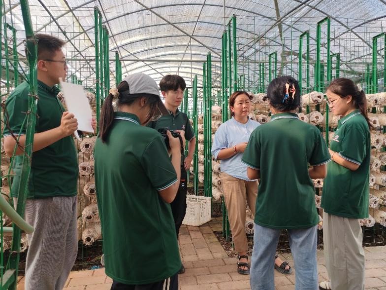 菌企車間觀生產,循環模式顯“有機” 當日下午,實踐隊走進左家鄉,先后走訪了德源菌業和黃波菌業。隊員們深入香菇、靈芝、猴頭菇等食用菌的培育生產車間、加工車間以及菌棒生產車間,全方位探尋特色食用菌從菌棒培育到成品加工的全過程。工作人員詳細介紹了企業的廢棒再利用循環農業模式,讓隊員們對“全域有機”產業發展有了更深刻的理解。