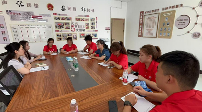 簽約儀式后,實踐隊與社區(qū)工作人員召開座談會。社區(qū)負(fù)責(zé)人從人口構(gòu)成、黨建工作、特色服務(wù)等方面介紹了社區(qū)基本情況,重點分享了在促進(jìn)各民族交往交流交融、解決群眾急難愁盼問題上的具體做法。隊員們結(jié)合參觀感受和實踐主題,圍繞“如何發(fā)揮青年力量參與社區(qū)志愿服務(wù)”“怎樣通過活動設(shè)計增強(qiáng)民族文化認(rèn)同感”等問題與工作人員深入交流,大家各抒己見,為社區(qū)治理和實踐活動開展提供了新思路、新方向。