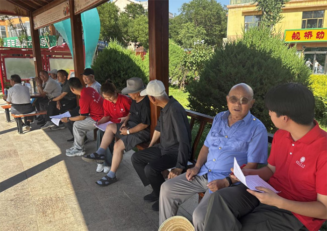 傍晚,社區(qū)廣場上清風(fēng)徐徐,實踐隊在這里開展了慰問老人志愿活動。隊員們主動走到乘涼的老人身邊,圍坐在一起拉起家常,關(guān)切地詢問他們的身體狀況、日常起居,認(rèn)真傾聽老人們講述社區(qū)的發(fā)展變化和過往經(jīng)歷。沒有華麗的禮物,卻有最真誠的陪伴——隊員們用耐心的傾聽、親切的話語,讓老人們感受到來自青年一代的關(guān)懷與敬意,也在與長輩的互動中,更深刻地理解了基層服務(wù)的意義,堅定了為群眾辦實事的初心。