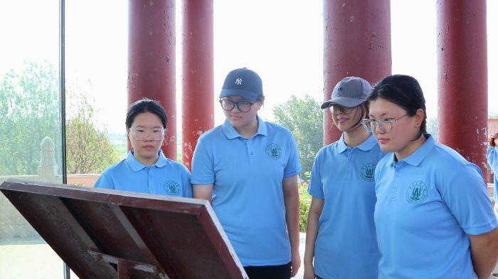 在隊長的帶領下,“螢火筑夢”小隊的成員們緩步走進禹王亭大殿,禹王大殿的莊嚴肅穆,東西配殿的古樸典雅,鐘鼓樓的巍峨挺立,無一不訴說著歷史的滄桑與沉重,館內石碑上生動的史料記載,仿佛將成員們帶入大禹治水的時代,親眼見證了大禹“三過家門而不入”的堅毅身影。成員們駐足于壁畫前,細細品味大禹治水的艱辛和智慧,仿佛穿越時空,與古人進行了一場跨越千年的對話。這次沉浸式的學習體驗,不僅讓成員們對大禹文化有了更加直觀的認識,更在他們心中種下了傳承文明的種子。