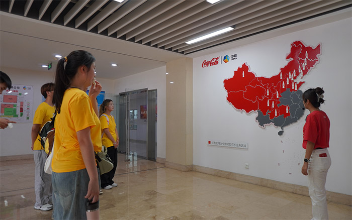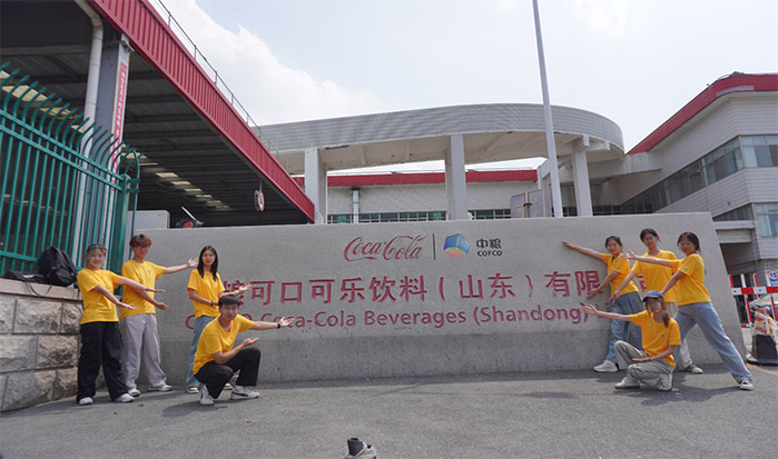 (圖為志愿服務(wù)團在調(diào)研中糧可口可樂青島分部過程中照片)