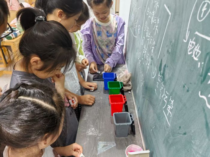 這堂關(guān)于“凈化污水與變廢為寶”的魔法課,正把環(huán)保的種子種進(jìn)每個童真的夢里。課程設(shè)計緊扣“知、行、創(chuàng)”三重目標(biāo):通過“環(huán)保小偵探”游戲辨識鄉(xiāng)土垃圾類別,利用飲料瓶組裝“污水凈化器”理解水資源珍貴,最后用廢棄紙箱創(chuàng)作“理想生態(tài)村”模型。這些實驗不是簡單的游戲,而是在孩子心中埋下系統(tǒng)思維種子——他們終將明白,青山綠水的守護(hù)就藏在每一次分類、每一次節(jié)水中。