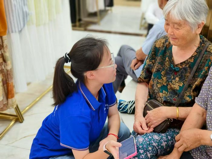 圖為實踐團(tuán)隊成員對當(dāng)?shù)鼐用襁M(jìn)行問卷調(diào)查 張安琪攝