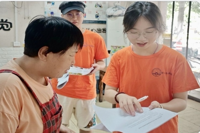 圖為實踐團隊隊員在長安老秦家面館對秦阿姨進行訪談。梁芯瑞 供圖
