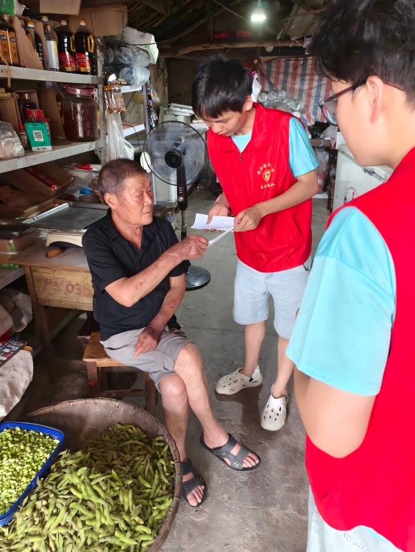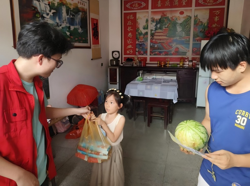 隨后,實踐團成員前往留守兒童家中,為其送去解暑食物,關愛留守兒童。