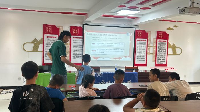 上午十時許,開班儀式正式啟動。團隊成員以“說好普通話,溝通無障礙”為主題,結合社會生活實例深入淺出地闡釋了推廣普通話對于促進人際交流、拓寬認知視野的重要意義,引導孩子們認識到學好普通話是融入社會、擁抱更廣闊世界的重要工具。隨后播放的兩段科普短片,通過動畫演示與情景再現,生動展現了普通話在日常交往、外出求學等場景中的實用價值,讓孩子們在直觀感受中加深了對推廣普通話重要性的理解。