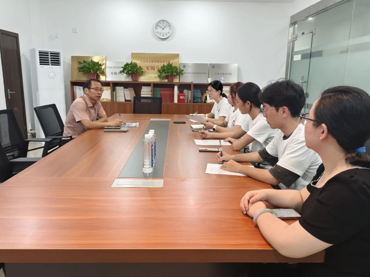 “無錫因運河而生,因運河而興,這是它區別于其他運河城市的核心特質。”江南文化研究院、無錫大運河文化帶建設研究院、江南大學歷史研究院副院長劉大禹教授的解讀,為實踐團打開了認知運河文化的重要切口。在座談中,劉教授以“運河穿城而過”的獨特地理優勢為鑰匙,詳細解析了無錫工商業的崛起密碼:當其他運河城市還在依托運河發展消費經濟時,無錫已憑借便利水道建起早期工業體系,棉花、面粉等物資通過運河高效流轉,逐步催生出近代工商業的繁華版圖。