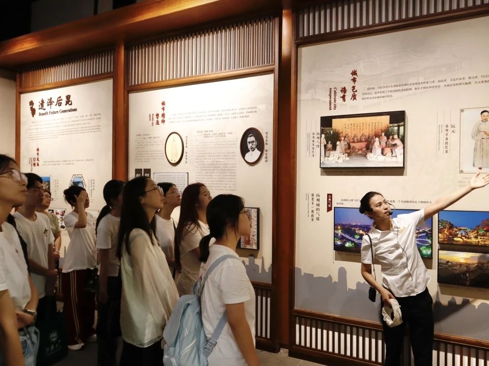非遺技藝的“守正創新”更讓實踐團眼前一亮。在揚州非遺珍寶館,成員們近距離接觸古籍印刻等傳統技藝,了解當代傳承人對技藝的保護與創新嘗試;在與揚州運河文化投資集團的座談中,黨委副書記范小平介紹了集團在文化保護傳承上的實踐,運河大劇院、非遺珍寶館負責人則分享了《如鳶》游戲與雕版印刷技藝“夢幻聯動”的案例——用游戲盤活非遺,為傳統技藝“出新”“出圈”“出彩”提供了新思路。此外,東關街歷史街區的市井氣息與運河大劇院的現代演繹,更讓成員們看到了運河文化在當代的多元表達。