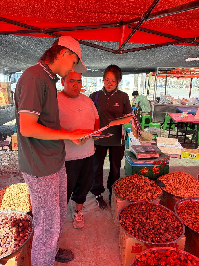 室內(nèi)教學(xué)之外,實踐隊還結(jié)合當?shù)氐膶嶋H情況組織了集市調(diào)研活動。當天恰逢當?shù)孛恐芤淮蔚拇笮腿杭,實踐隊成員前往集市發(fā)放普通話宣傳冊并調(diào)研了普通話在當?shù)氐氖褂们闆r。在集市上,實踐隊成員通過采訪當?shù)鼐用瘢私獾狡胀ㄔ捲谌粘I钪械闹匾。一位受訪居民表示:“普通話是我們與外界溝通的橋梁,特別是在這樣的集市上,普通話的使用讓我們能夠更好地與來自不同地方的人交流,這對我們的生意非常有幫助。”