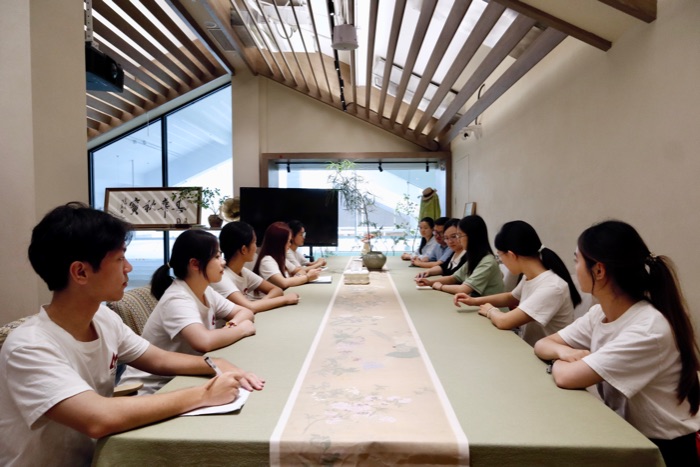“無錫因運河而生,因運河而興,這是它區別于其他運河城市的核心特質。”在江南大學歷史研究院的座談會上,副院長劉大禹教授向運河織金實踐團的成員們點明了無錫運河的獨特性。他分析道,當蘇杭等城市借運河發展消費經濟時,無錫已依托水道建立起工業體系,棉花、面粉經運河流轉,奠定了近代工商業的根基。劉大禹教授以“運河穿城而過”的地理特質為鑰,解析了無錫工商基因的起源。