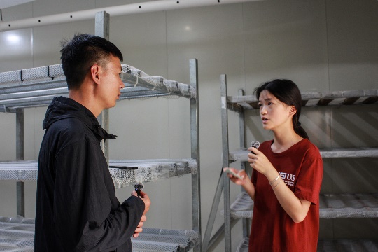 在基地負(fù)責(zé)人劉鎮(zhèn)先生的帶領(lǐng)下,實踐團(tuán)成員們走進(jìn)智能化大棚,近距離觀察了毛豆與靈芝的現(xiàn)代化種植場景。劉鎮(zhèn)先生詳細(xì)介紹了基地的核心運營理念——科技驅(qū)動。由浙江萬旺生物科技有限公司打造的這片基地,在羊肚菌等高端食藥用菌的種植上,廣泛應(yīng)用了智能化設(shè)備和精準(zhǔn)環(huán)境控制系統(tǒng)。