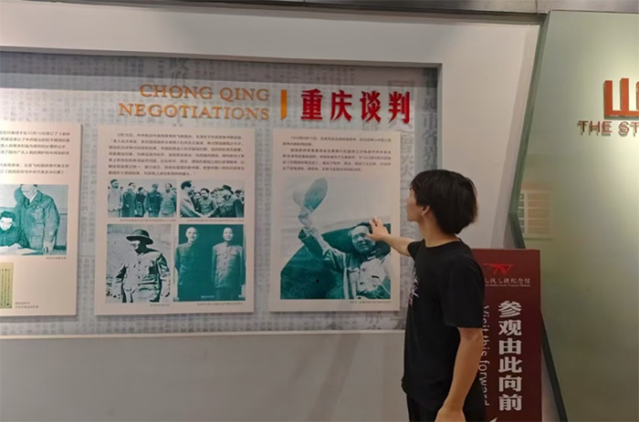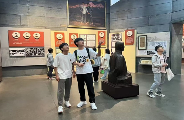 圖為江蘇科技大學海洋學院實踐團成員尹曉峰在參觀紅色紀念館。尹曉峰 供圖