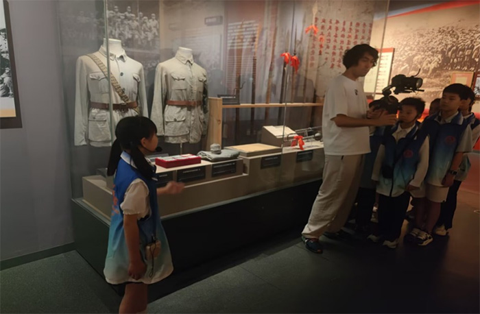 圖為江蘇科技大學海洋學院實踐團成員劉霽鋅參觀紅色紀念館進行學習。劉霽鋅 供圖
