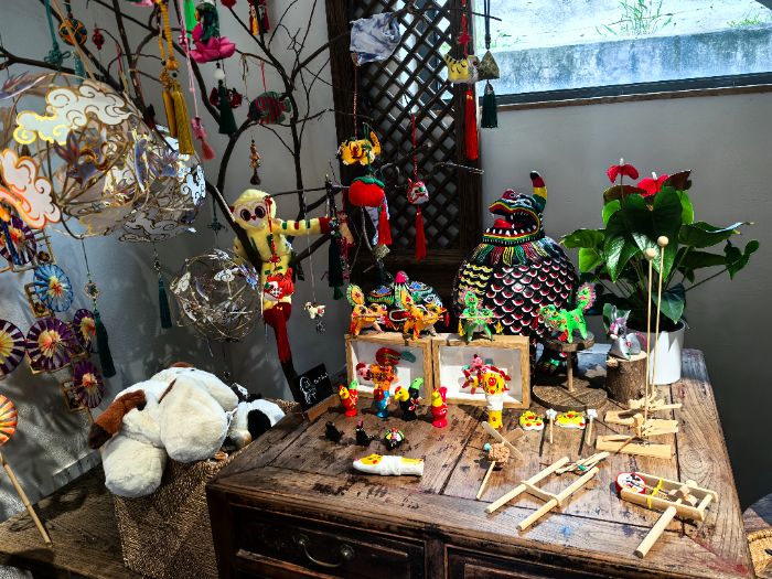 團隊一行還走進了“回藝SPACE:非遺體驗空間”進行文創產品形式調研。這里陳列的掛件、冰箱貼等非遺文創產品做工精巧,透著濃郁的文化韻味與匠心溫度,隊員們圍繞“非遺元素與鄉村文旅的結合路徑”“非遺文創的數據化傳播”等問題展開討論,為后續研究積累豐富的一手素材。