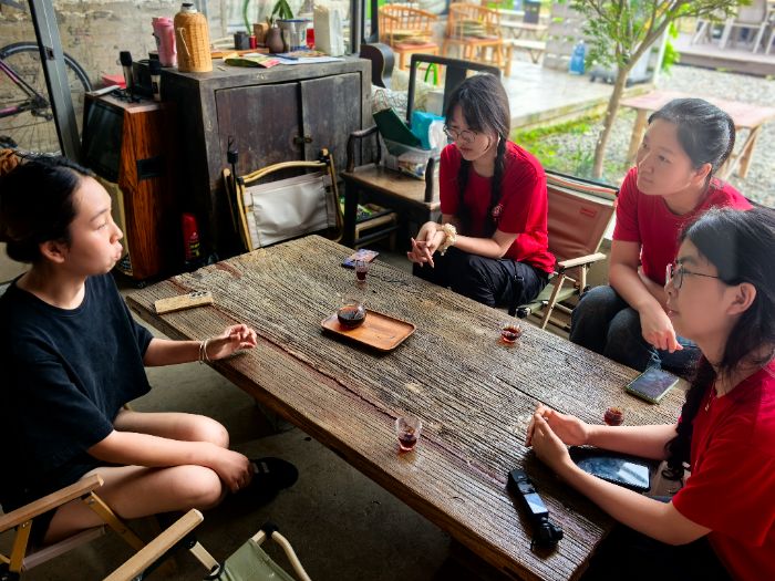 訪談中,各方對于文旅發展的見解給團隊帶來諸多啟發。堂屋文創負責人強調,優秀文創需兼顧“美學表達”與“在地特色”,要挖掘獨特IP,避免同質化;梔咖啡主理人分享了通過產品升級和互動體驗提升消費黏性的經驗;不空藝術共創空間主理人則指出,鄉村文旅應注重“生態構建”,實現資源互通、優勢互補。
