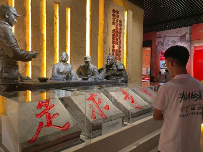 二、再探革命舊址,深悟延安魂  團(tuán)隊(duì)前往王家坪革命舊址。這里曾是八路軍總司令部所在地,隊(duì)員們?cè)谲娢Y堂前駐足,聆聽(tīng)講解員講述彭德懷等將領(lǐng)指揮作戰(zhàn)的事跡,感受革命先輩在戰(zhàn)火中運(yùn)籌帷幄的智慧。第二天,大家又來(lái)到棗園舊址的“幸福渠”旁,了解這條由軍民共同修建的水渠如何解決當(dāng)?shù)厝罕姷墓喔入y題,深刻體會(huì)“自力更生、艱苦奮斗”的延安精神。