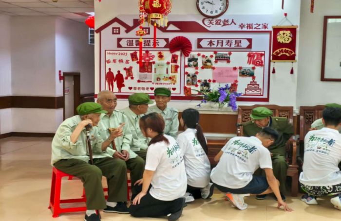 一、重訪八一敬老院,重溫崢嶸歲月  大雨傾盆,但阻擋不了團(tuán)隊(duì)前進(jìn)的步伐,團(tuán)隊(duì)成員前往延安市八一敬老院參觀慰問(wèn)。在敬老院,團(tuán)隊(duì)成員為老兵爺爺們送上牛奶和西瓜,陪他們聊天,聽(tīng)他們講述過(guò)去的崢嶸歲月。其中,與曾在西藏解放中擔(dān)任通信兵的寇爺爺交流,讓大家受益匪淺。寇爺爺雖已年邁,但精神矍鑠,他講述著在艱苦環(huán)境下傳遞情報(bào)的驚險(xiǎn)經(jīng)歷,激勵(lì)團(tuán)隊(duì)成員要好好學(xué)習(xí),報(bào)效祖國(guó)。大家圍坐在一起,與老兵爺爺們一起唱歌,歌聲和歡笑聲回蕩在敬老院,溫暖著每一個(gè)人的心。