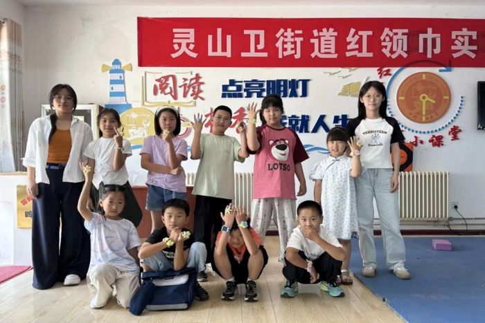 “我覺得書里的星星就像爺爺說的螢火蟲,會在黑夜里等我們回家。”8歲的劉卿愛同學舉著小手,眼神亮晶晶地分享對《小王子》的獨特感悟。在豐富多彩的PPT前,孩子們圍坐成圈,實踐隊員們正生動講解《小王子》《窗邊的小豆豆》《城南舊事》等經典書目——從夏洛用蛛網織就“了不起”的友誼,到小豆豆在巴學園電車教室里的奇妙成長,再到英子與秀貞在胡同里的溫情故事。孩子們攥著衣角、晃著小腿,將友誼的珍貴、守護的溫暖、和平的分量悄悄裝進心里。