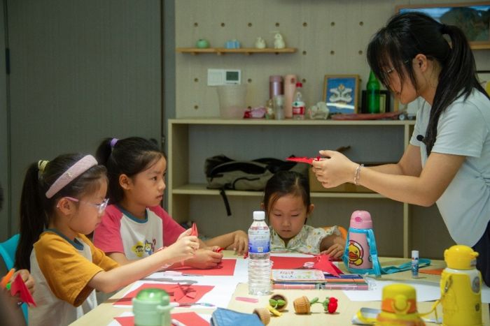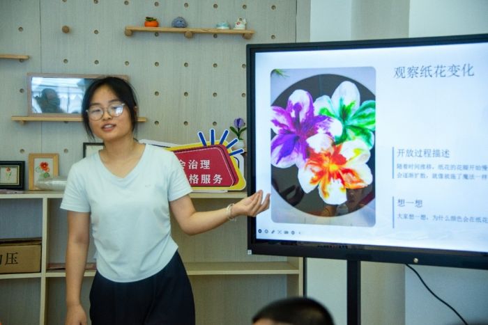 隊員徐暢講解紙花制作 唐雨虹攝
