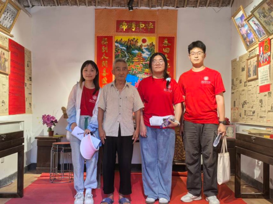 調研中,隊員們遇到了82歲的退休老黨員馬爺爺。其居住的老宅雖有空置房屋,但推開吱呀作響的木門,明亮的堂屋內,陳列滿了各種各樣的黨員紀念,自述的文章、貼掛的報紙照片、木桌上的毛主席雕像......一點一滴都體現著馬爺爺的赤誠初心,讓隊員們感觸頗深。當提及這座老屋,馬爺爺渾濁的眼中泛起微光,指著屋外表示:“這房子,我專門陳列紀念……如今啊,肯定舍不得拆。”這座老屋承載的不僅是磚瓦木石,更有烽火歲月的守護與黨員的血脈記憶,這里安放著他個人生命史中最珍貴的印記。