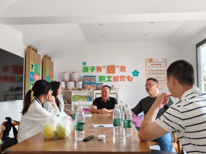 在村黨總書(shū)記夏平祥同志的帶領(lǐng)下,團(tuán)隊(duì)參觀了紅濾輝映工坊內(nèi)的工作車間及相關(guān)配套設(shè)施。經(jīng)負(fù)責(zé)人與車間員工介紹,工坊內(nèi)設(shè)置了員工休息站、兒童托管所、“一米”菜園、智能充電車棚,同時(shí)還采用了“暖心積分兌換”機(jī)制,開(kāi)展節(jié)假日戶外燒烤等集體活動(dòng),這些設(shè)置提升了車間婦女的工作與生活質(zhì)量,體現(xiàn)了工坊具有“巾幗”特色的人文關(guān)懷。對(duì)周邊村民而言,工坊不僅僅是提高家庭收入的工作場(chǎng)所,更像是共同奮斗、彼此關(guān)愛(ài)的“大家庭”,正印證了工坊進(jìn)門處的招牌“我的工坊我的家”。