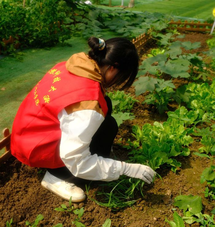 投身農業實踐:體驗勞動艱辛,感悟生態農業魅力7月11日,實踐團隊來到當地的三有生態小菜園,開啟勞動實踐篇章。菜園里,郁郁蔥蔥的蔬菜在微風中搖曳,散發著清新的泥土氣息。隊員們迅速分組,戴上手套、拿起工具,投入到拔草、澆灌的工作中。七月的驕陽似火,大棚內更是熱氣騰騰,不一會兒,隊員們就汗流浹背,但大家沒有絲毫懈怠。通過一天的辛勤勞作,隊員們不僅體驗到了農民勞作的艱辛,更深刻感悟了“誰知盤中餐,粒粒皆辛苦”的內涵。隊員李潤澤感慨道:“以前只知道糧食來之不易,今天親身體驗后,才真正感受到其中的艱辛。”
