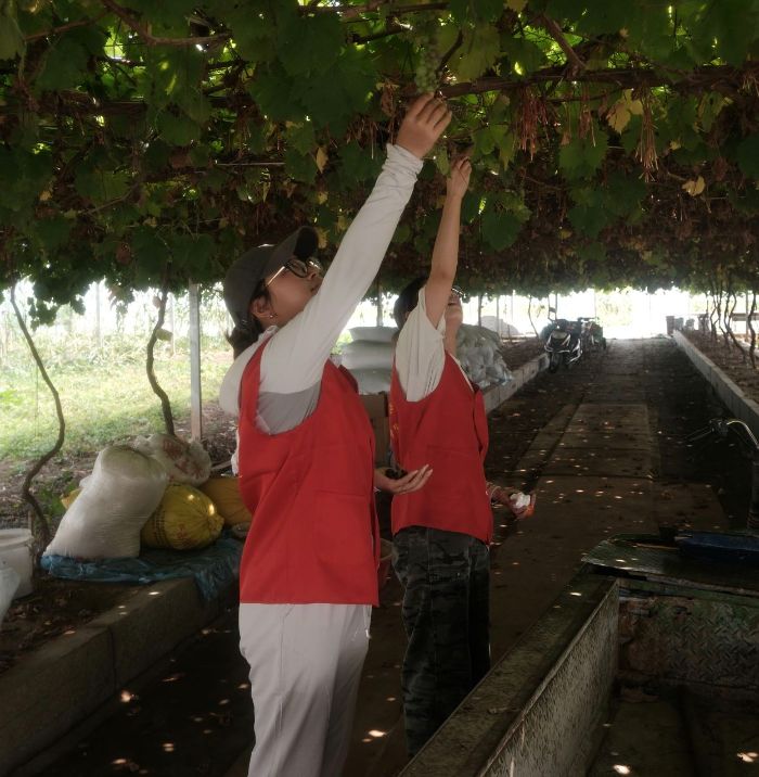 圖為隊員在大棚內采摘無農藥葡萄。張新遠 攝