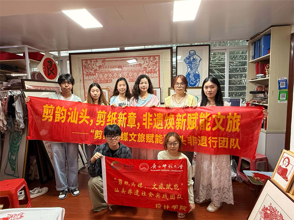 圖為“剪紙為媒,文旅賦能”汕頭非遺社會實踐團隊成員合影