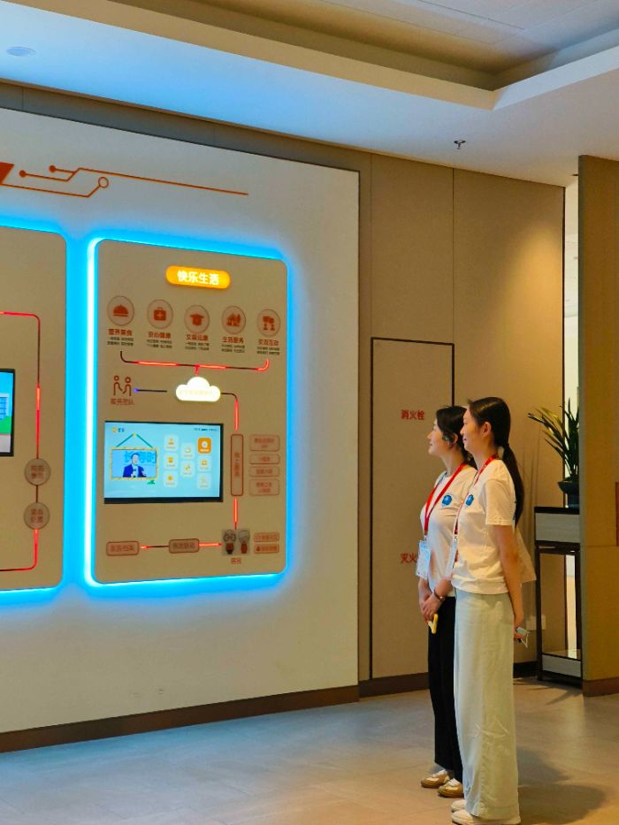 在泰康甬園之家工作人員的熱情引導下,隊員們深入社區內部。科技賦能、人文關懷的畫卷徐徐展開:適老化設計的居住空間溫馨舒適;配備專業醫護人員的康復醫院讓人安心;恒溫泳池、健身房、書畫室、音樂坊等活動空間一應俱全;智能穿戴設備實時監測長者健康,一鍵呼叫系統便捷高效。尤其令隊員們印象深刻的是社區精心打造的“記憶照護區”和豐富的文娛課程,處處體現著對長者身心需求的細致關懷。