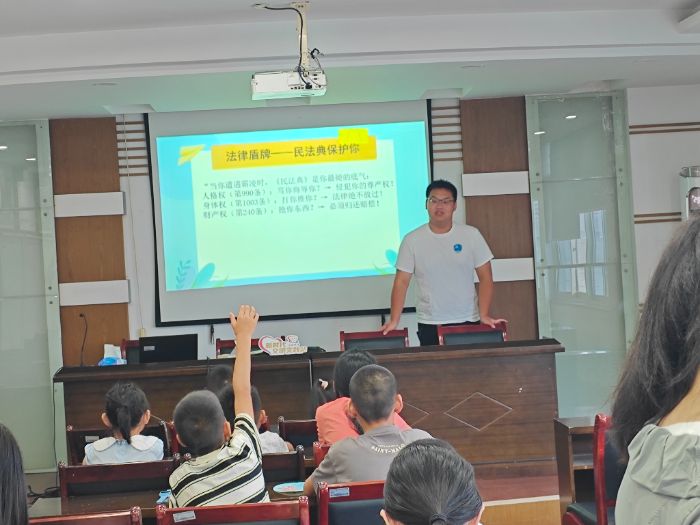 “法律是厚厚的書?不!它是你對抗霸凌的‘超能盾牌’!”主講人揮舞著《民法典》道具,將枯燥法條化作神奇力量: