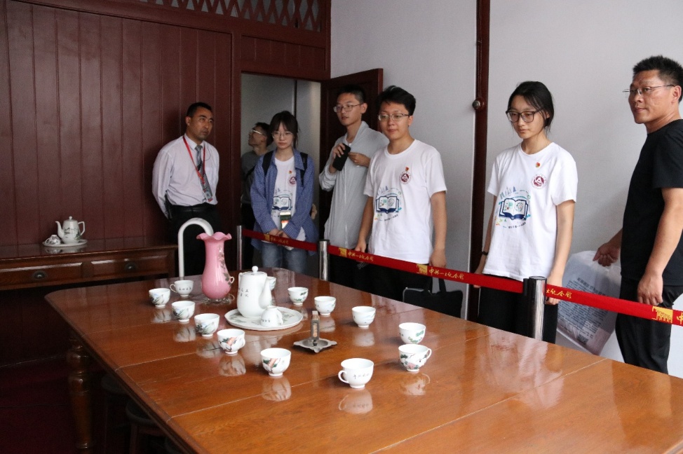 七月盛夏,上海興業路76號青墻紅磚的石庫門建筑靜靜矗立。實踐團踏進中共一大會址紀念館,在歷史的回響中開啟了一場尋根溯源的叩問。展柜內泛黃的《新青年》創刊號、復原會場里見證風云的木桌椅,將青年學子拉回1921年的覺醒年代。團隊成員趙柏翔駐足于毛澤東同志青年手跡前,目光灼灼:“百年前的先驅以思想為火種點燃革命之路,今日我們當以代碼為盾、算法為矛,守護科技命脈——從‘救國圖存’到‘科技強國’,這份‘為民族謀復興’的初心,始終是穿透時空的精神火炬!”