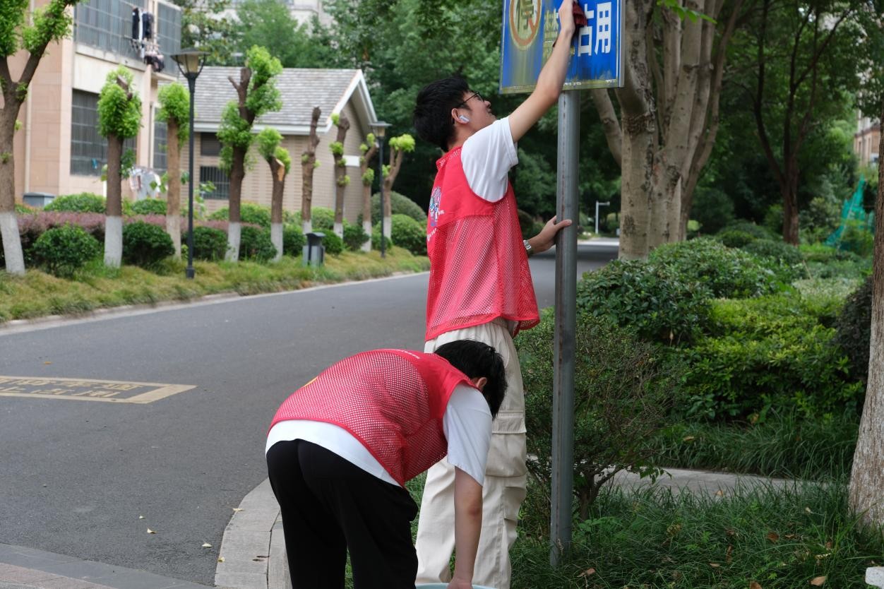 為營造整潔優美的社區環境,實踐團隊還組織了“社區清潔大行動”。志愿者們分工明確、干勁十足:有的拿起抹布仔細擦拭社區告示牌、路牌和公共健身器材,有的彎腰清理衛生死角的垃圾雜物,有的則配合默契地清掃路面落葉。