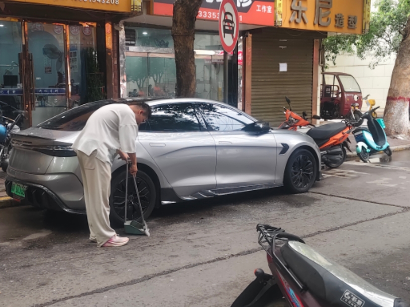 【圖二】(這是一張我在大路上掃垃圾的照片,可以看到我手持掃把,背景是整潔的街道)