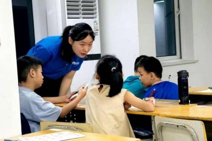 實踐隊員楊奕睿為孩子們講授了《時間軸上的紅色密碼》課程,讓孩子們在趣味互動中觸摸百年黨史的脈絡。她用標注著從中共一大到新中國成立的關鍵節點數據的時間軸,拋出“黨員平均年齡的秘密”的問題,引導孩子們發現了兩代黨員在青春歲月中踐行使命的共性。楊奕睿還展示了不同年代的黨員人數統計表,引帶領孩子們計算增長倍數,在折線圖的攀升中思考數據背后關于奉獻的故事。