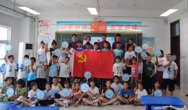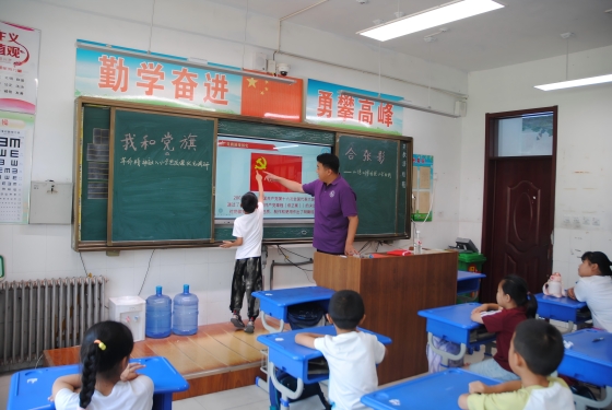 為助力大中小學(xué)思政課一體化建設(shè)的推進,切實發(fā)揮思政課立德樹人關(guān)鍵課程作用,深入調(diào)研革命精神在小學(xué)思政課中的融入情況,7月18日,山東理工大學(xué)愛之傳承暑期社會實踐團負責(zé)人趙康棋在明德小學(xué)開展了“我和黨旗合張影”主題教育課程,將紅色基因的種子深深埋在每一位小朋友的心中。