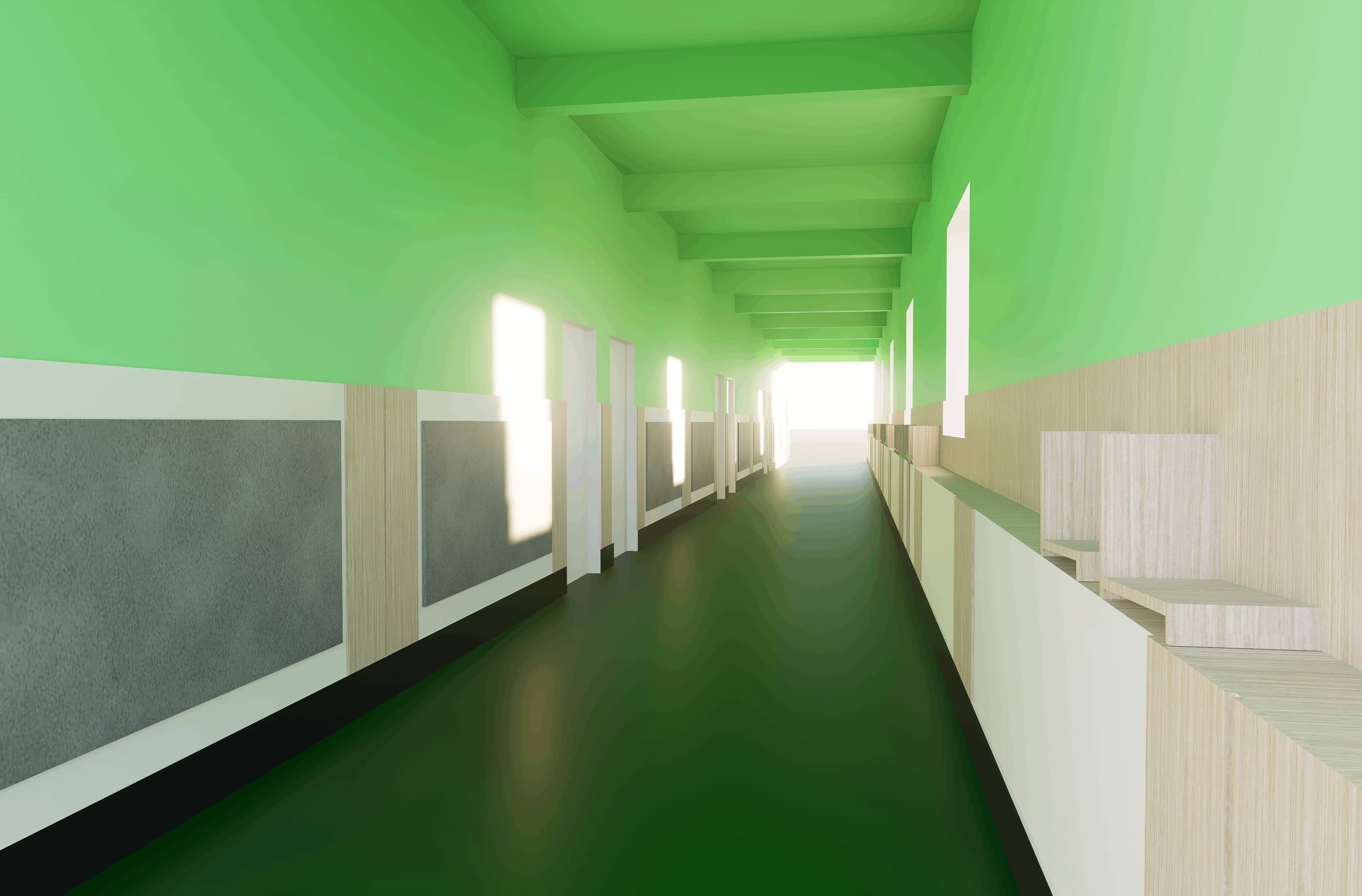 專業拓展,巧換新顏 在與學生相處之余,團隊成員還靈活運用課堂所學,為南樓小學設計北教學樓廊道改造方案,解決當地棘手問題,進一步深化校地合作。前期設計階段,團隊成員對教學樓廊道進行全面測繪工作,并在充分了解校方“簡潔、明亮、易施工”的要求后,提供三版設計方案并被校方采用。后期落地階段,成員化身小建筑師,與校方領導共同商定施工用材與材料預算,輔助施工團隊更快完成實地改造工作。