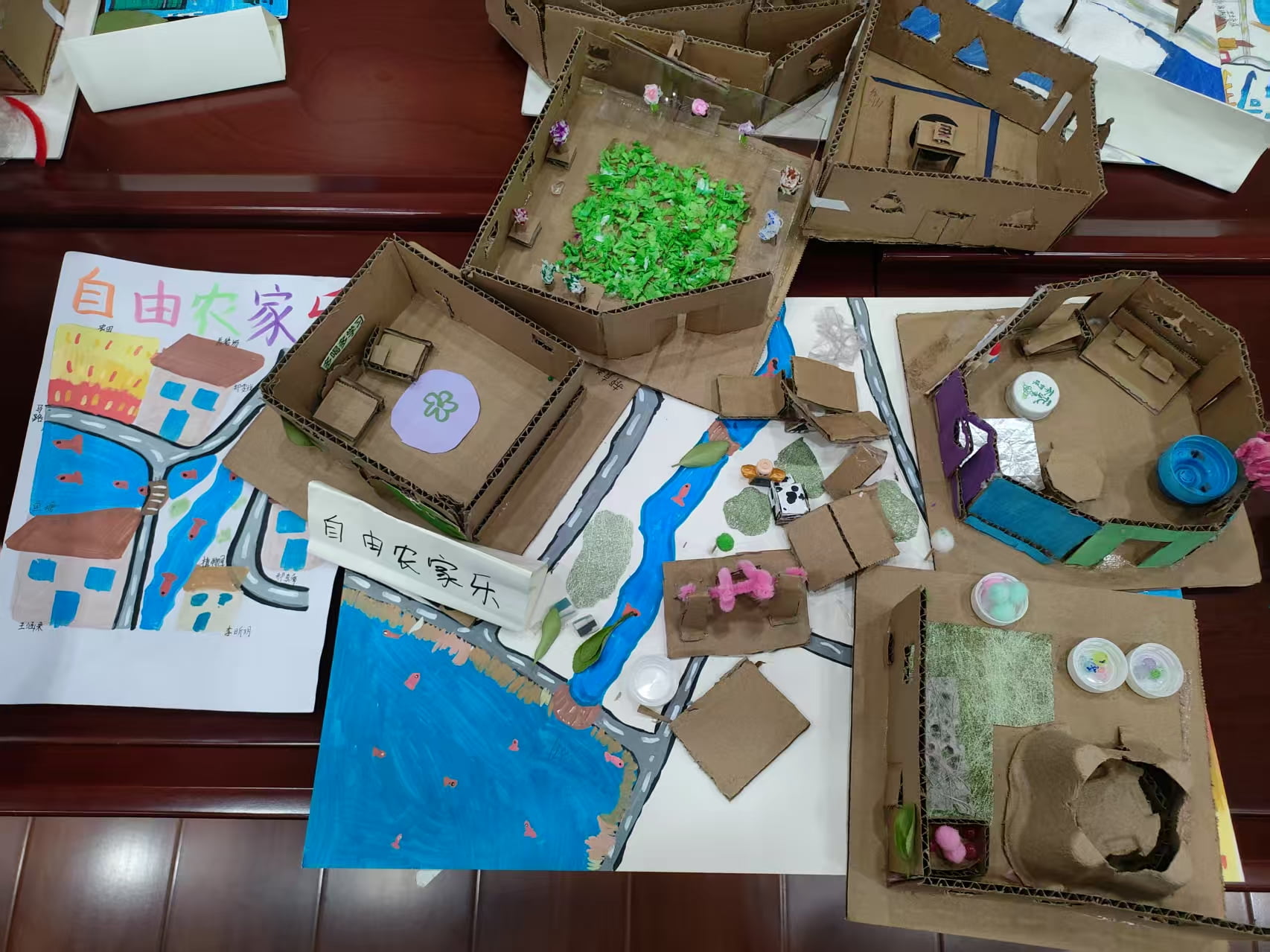 在建造課上,同學們化身“小小建筑師”和“小小城市設計師”,從微觀的教室空間營造到宏觀的城市系統設計,循序漸進地在實踐中,深刻體會從單體空間到復雜城市系統的演變與關聯。建筑學院的幾位同學,將大學課堂的建筑、規劃知識簡化,帶領學生們認識不同的房屋、城市類型。之后,同學們從認知環節逐步轉向動手,親自搭建小房屋,再將房屋拼貼到更大的地圖底板上,分小組設計出屬于自己的創想城市。學生們在課程中鍛煉團隊協作能力,激發動手能力和創作想象力。
