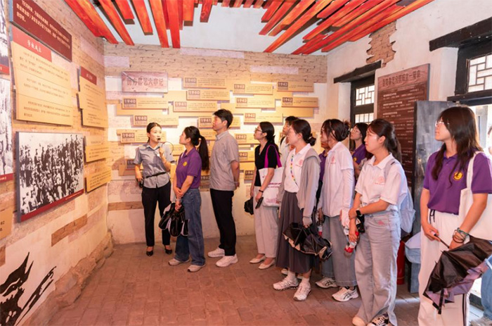 八路軍總部磚壁舊址紀念館內,師生們穿梭于窯洞庭院,仔細參觀每一處展室,聆聽專業講解員的生動敘述,深入探尋總部在抗日戰爭時期四次駐扎于此的詳細歷史脈絡。作為華北敵后抗戰至關重要的指揮中心之一和戰略支點,磚壁承載的豐富的戰略智慧與奉獻精神。實踐團成員們通過組織主題討論會、錄制思政微課視頻、創作互動體驗活動等多種形式,將革命歷史轉化為鮮活生動的教育資源,讓紅色歷史變得可感可學,激發學生們的愛國情懷和時代擔當。