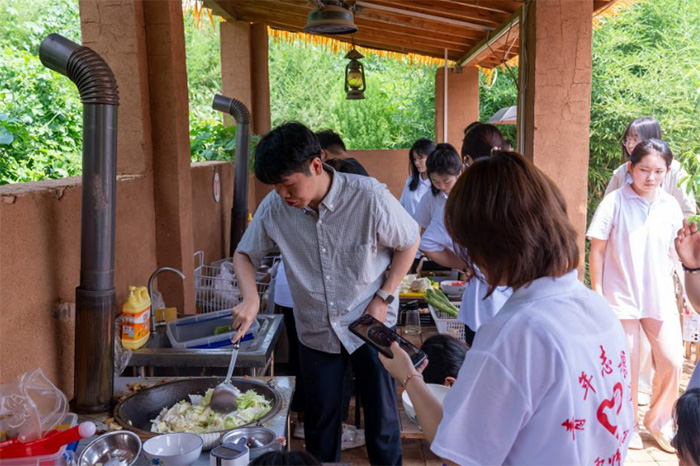 在興盛垴村,兩校師生共同體驗柴火飯的制作。大家分工協作,生火、洗菜、切菜、烹飪,在勞作與分享中,深刻體味革命先輩自力更生的奮斗精神,讓紅色基因在煙火氣中悄然傳承。