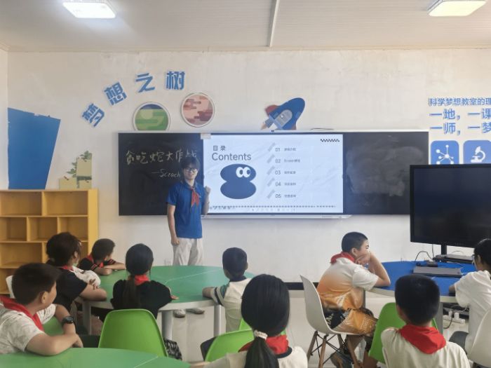 本次活動充分發揮學院專業特色,設計了系列AI技術科普課程、趣味編程課和科學實驗。通過“二進制浪漫解碼”“AI的奇妙世界”等生動講解,幫助孩子們理解計算機科學知識,引導孩子們在“玩”中學、在“做”中思。實踐團還邀請學校選派駐泗洪縣鄉村振興掛職干部為孩子們開設“人工智能時代”主題思政課,將科技教育與愛國主義教育相結合,通過講述抗戰歷史,引導孩子們銘記歷史,將個人科技夢想融入國家發展。