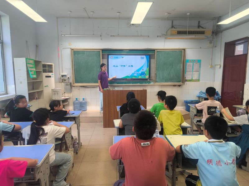 隨后,實踐團成員楊怡瑩以高放射性污染物如何放置的問題為切入點,向學生們介紹了北山“萬年級”工程,在低降水量和高蒸發量氣候下的荒無人煙的沙漠,建造起了世界上規模最大、功能最齊全的地下實驗室。這種自力更生、艱苦奮斗的精神,正是“兩彈一星”精神的傳承與寫照。聽完這些故事,孩子們紛紛流露出敬佩的神情,對“兩彈一星”精神有了更深刻的理解與體會。