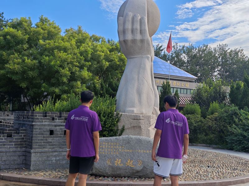 三尺講臺之外,實踐團還深入鄉村基層調研,并努力挖掘和學習當地的紅色文化,盡最大可能不斷拓展社會實踐的廣度、寬度、深度,讓社會實踐不僅“不虛此行”更要“滿載而歸”。實踐團拜訪蔡中村村委會,從和村支書的交談中窺見當代中國的鄉村縮影;慰問村中老黨員時,顫抖而又堅定聲音講述著堅守半個世紀的信仰,那枚閃耀著光輝的“光榮在黨50周年紀念章”成為激勵實踐團的精神力量;在德州市革命烈士陵園里,實踐團成員獻花、掃墓、鞠躬,革命精神的傳承在實踐團的行動中具象化......這些在課堂外浸潤著泥土的見聞,最終又被實踐團帶回到課堂,讓家國情懷和革命精神在明德小學的孩子們心中開花結果,社會實踐的意義在此刻完成了閉環。