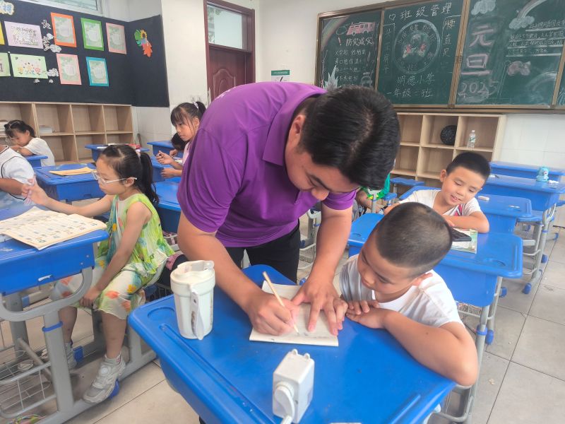 7月15日清晨,載著33名實踐團成員的大巴車駛過明德小學新修的水泥路。當實踐團再次踏入明德小學,熟悉的操場反射著晨光,教室窗邊的夏風呼呼作響,這樣的場景讓一些去年來過的老隊員不禁恍然,仿佛又回到了去年剛來的時候。又是一年夏日至,又是一年赴約時,十年間,山東理工大學愛之傳承暑期社會實踐團共計300余人接力奔赴,共同書寫了青春與鄉村振興同頻共振的壯美畫卷。