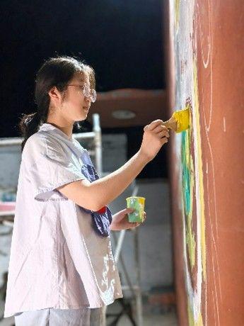 在魏莊小學食堂西側,曾有一面長15米的灰白圍墻,單調得連藤蔓都不愿攀附。7月25日清晨,這面墻迎來了它的"高光時刻"——河海大學滿天星支教團的畫筆落下第一抹鈷藍,開啟了為期三天的"墻面重生計劃"。