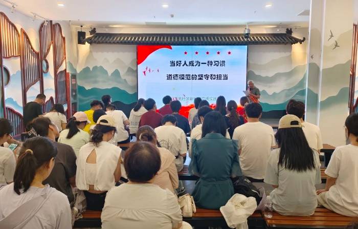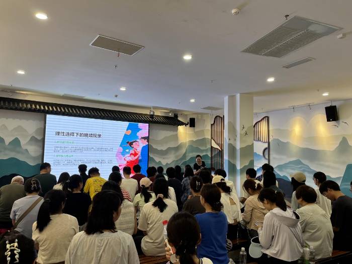 專家引領明方向,青年對話破困惑;顒舆M入“家庭觀與生育觀”專題環節。區心理學會會長王靜娟以《新時代青年婚育觀構建》為題,結合“Z世代”心理特征與社會調研數據,通過“職場媽媽時間管理”“代際溝通技巧”等典型案例,深入解析家庭責任與個人發展的平衡之道。講座后的“青年談話”中,自媒體人小午未則從新媒體視角探討“網絡時代如何傳遞正向婚育觀”。青年們圍繞“經濟壓力與生育決策”“丁克家庭的社會認同”等話題展開熱烈討論,00后參與者李女士表示:“專家和嘉賓的分享讓我意識到,家庭觀不是選擇題,而是需要用心經營的終身課題。”