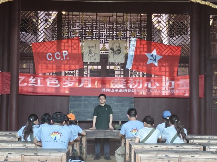 羅霄山腹探真理,星火光中悟哲思。贛鄱毓秀,紅色搖籃,金石有聲,不考不鳴。近日,蘇州大學“哲學+”實踐團在王一成老師的帶領下,赴中國革命搖籃——江西省井岡山市,在全國青少年井岡山革命傳統教育基地(以下簡稱團中央井岡山中心)的指導下開展一場場融匯歷史場域與當代哲思的“行走的思政課”。實踐團成員通過瞻仰革命舊址、學習紅色歷史、參與實踐教學,在追尋紅色足跡中深化家國情懷、錘煉思想品格、感悟井岡山精神譜系的豐富內涵。